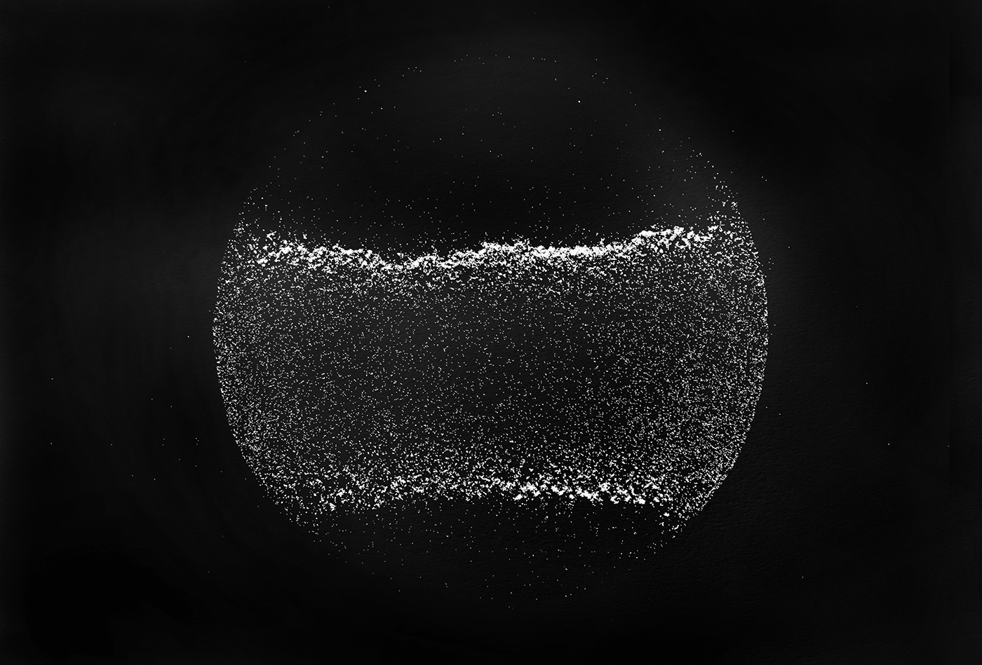 In the fall of 2015 I began harvesting tiny Nicotiana seeds from my family’s garden. I then hand-sifted the seeds on museum board to create cosmological analogies: black holes, nebulae, latent energy, encoded life, infinite births awaiting — starstuff as seedstuff. The images were inverted and printed as negative images.